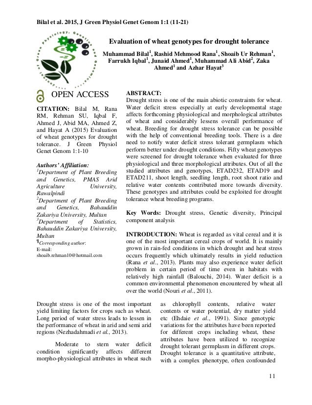 Gratuit Evaluation Of Wheat Genotypes For Drought Tolerance