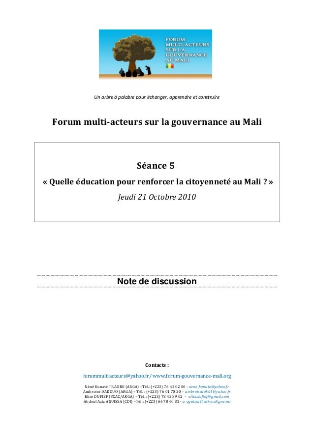 Téléchargement gratuit Quelle Education Pour Renforcer La Citoyennete Au Mali Octobre 2010